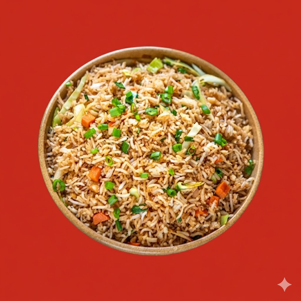 Veg fried rice stir-frying cooked rice with vegetables and seasoned with soy sauce, aromatics, and spices