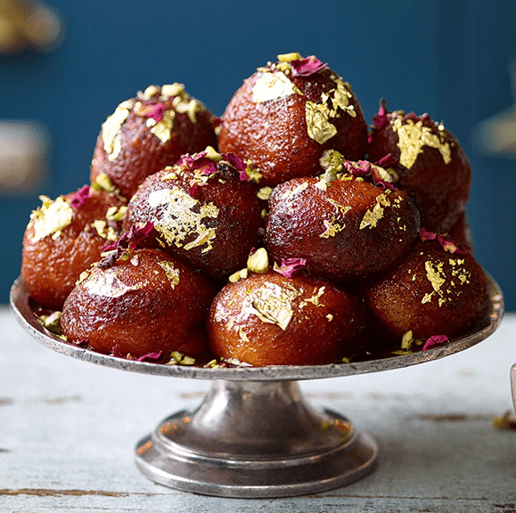 This traditional Bengali sweet Rasgulla has soft and spongy balls made of fresh paneer and dipped in sugary syrup.