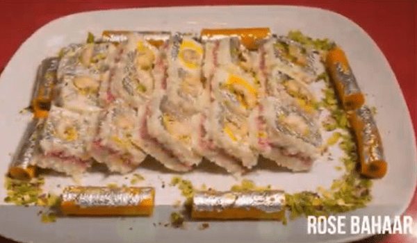 Rose Bahar Rolls are delicious sweet rolls made from Khoya, Beetroot, milk and sugar.